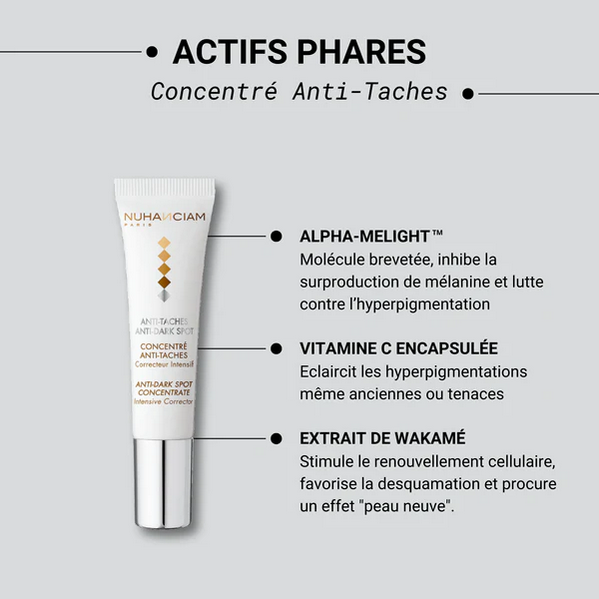ANTI-DARK SPOT CONCENTRATE Intensive Corrector combines 4 complementary active ingredients to act on all factors that cause hyperpigmentation spots to form.